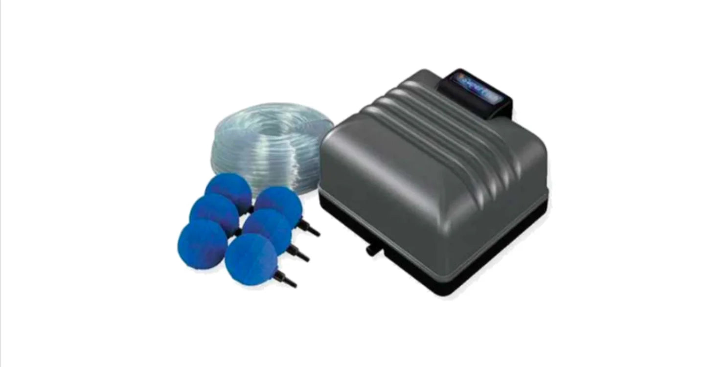- De Koi-Flow luchtpompen zijn ook als complete kit verkrijgbaar met zes XXL luchtstenen en 50 meter luchtslang. - Met de meegeleverde luchtstenen kan je de vijver en het vijverfilter op meerdere plaatsen beluchten voor en optimale zuurstofhuishouding. - Maximale pompcapaciteit: 1200 L/h