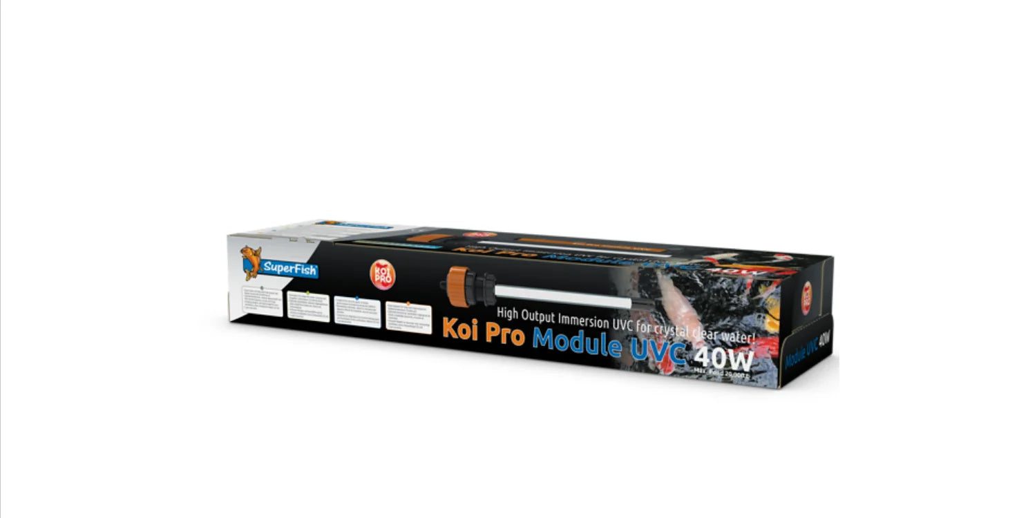 - Voor Koi-vijvers tot 20.000 liter. - Zorgt voor een heldere vijver binnen 14 dagen. - Vermindert algengroei zonder gebruik van chemicaliën. - Doodt schadelijke bacteriën, virussen en schimmels. - UV-C straling heeft geen invloed op de pH-waarde van het vijverwater. - Kwartsglazen UV-lamp (40 Watt High Output) met hoge UV- straling en zeer lange levensduur van maar liefst 16.000 branduren. - Micro-schakelaar voor veilig gebruik. - Elektronische ballast voor optimale lichtopbrengst. - Inclusief adapter en doorvoer voor eenvoudige installatie. - Korte inbouwdiepte, slechts 35 cm. Vermindert de waterstroom niet.