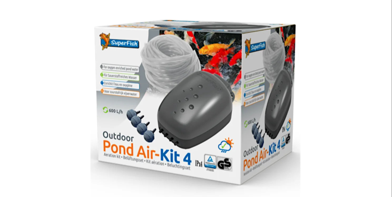 - Outdoor beluchtingssets voor de vijver. - Luchtpomp met 2,5 meter kabel - 25 meter luchtslang en tot 4 luchtstenen (o 25 mm) - Voorzien van een ophangoog waardoor verticale plaatsing mogelijk is - Waterbestendig (IP ×4) en TÜV-GS gekeurd met 2 jaar garantie - Inclusief reserve-membraan en gebruiksaanwijzing - Maximale pompcapaciteit: 600 L/h