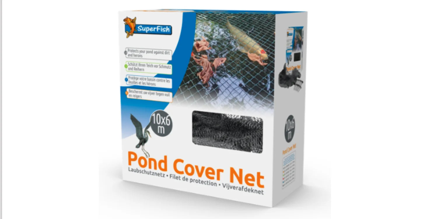 Een afdeknet voorkomt dat bladeren of ander vuil in de vijver terechtkomen en het beschermt tevens jouw vissen tegen reigers en katten. Grondpennen inbegrepen