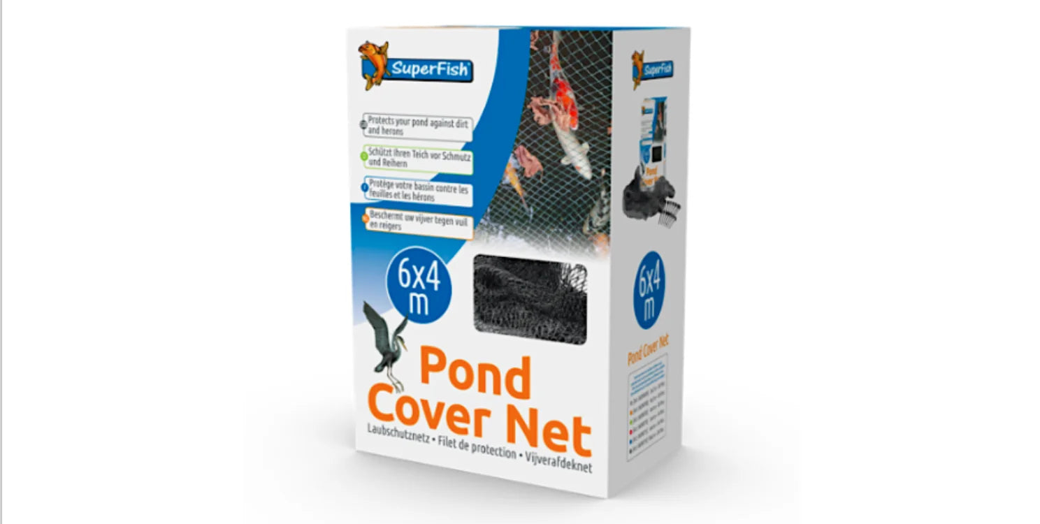 Een afdeknet voorkomt dat bladeren of ander vuil in de vijver terechtkomen en het beschermt tevens jouw vissen tegen reigers en katten. Grondpennen inbegrepen